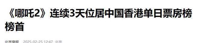 北京商报2025.02.25《《哪吒2》贯穿3天位居中国香港单日票房榜榜首》